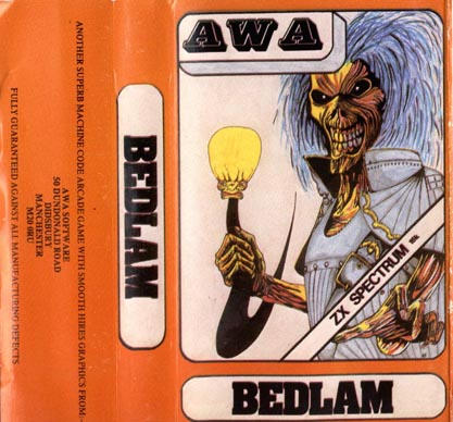 Another metal album cover: AWA Software's Bedlam on the ZX Spectrum is a rather shameless rip from Iron Maiden's Killers.