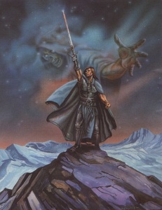 This castle doesn't come from real life, though, but is ripped straight out of an illustration by Clyde Caldwell for the Ravenloft module in Advanced Dungeons & Dragons, Dracula included. Caldwell is a very prolific artist seen in countless Magic the Gathering and D&D publications, and also provided some of the covers for SSI's Goldbox series. This is the only cover in the classic NES trilogy where we haven't found a stand-in for Simon's pose... yet.