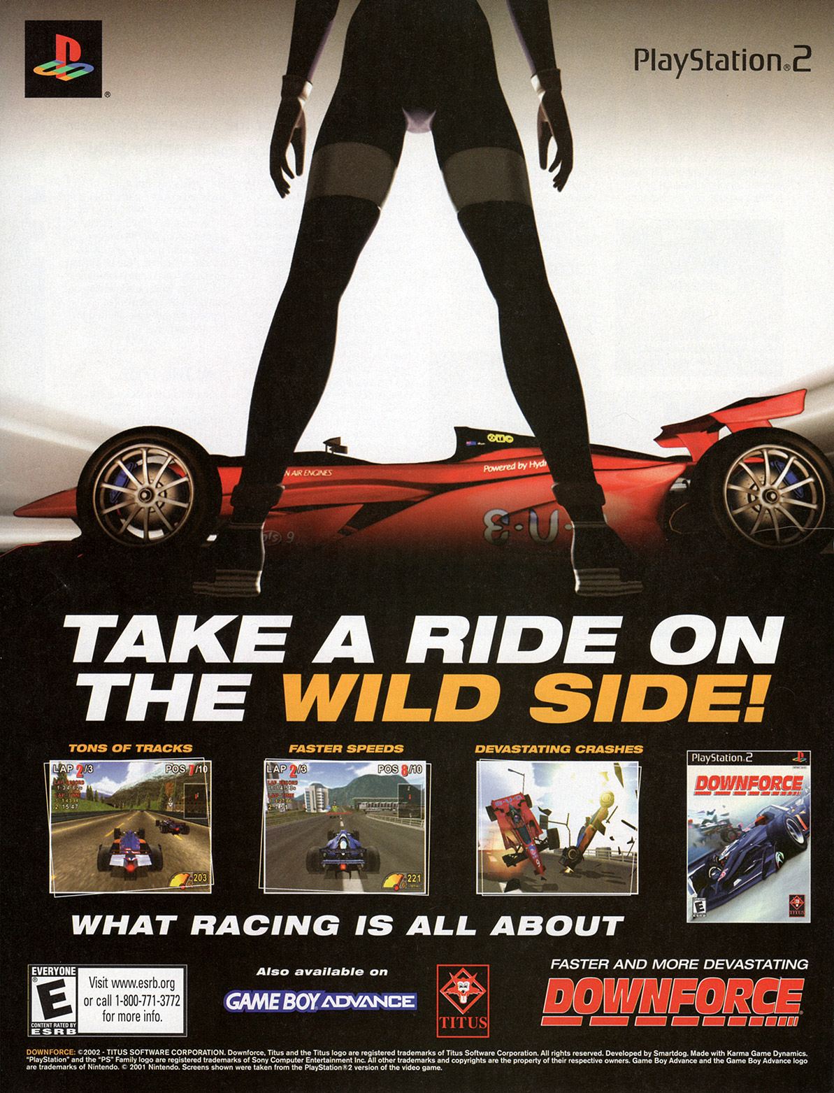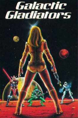 The saucy shot that reveals the central element of the poster through the legs of a barely-clad woman got copied in a lot of covers and ads for all kinds of games - from upper left to lower right there's SSI's sci-fi sports sim Galactic Gladiators, SEGA's arcade shooter Thunder Blade (which we'll meet again on page 4), Al Lowe's saucy adventure Leisure Suit Larry, the racer Downforce, the fighting game Evil Zone, the tank shooter BattleTanx, the anime-licensed Japanese adventure The Space Adventure Cobra and Playaround's Atari 2600 porn game Bachelor Party.
