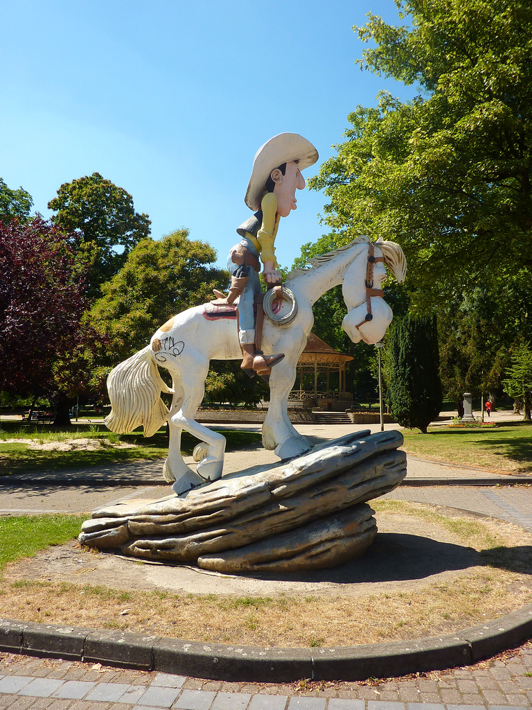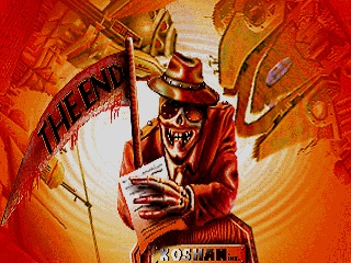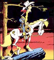 Well, actually this is about the European-developed home computer versions of Gun.Smoke, which started in their homeland of Spain as the clone Desperado. Only for the UK market Capcom picked the game up and released it officially with the Gun.Smoke title. The game's ending shot recreates one of the most iconic panels from Lucky Luke, which was even made immortal with a larger-than-life statue in the Belgian town Charleroi.