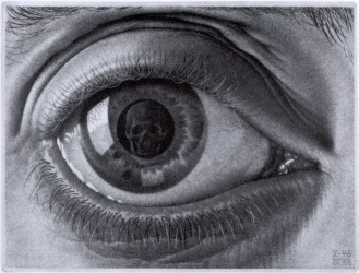 M.C. Escher's impossible constructs are another popular source of inspiration for game artists. It took until 2013's Antichamber to create an entire world upon similar ideas, but for cover and title screen artists the job has always been easier. The mix of board- and arcade game Archon was one of the biggest PC titles of its time, although copying Escher seems to have been always more acceptable than other artists due to their more or less abstract nature. The shape that's copied here is actually not the big one from the center, but the smaller one to the lower left.