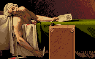 Another famous painting, La Mort de Marat! If it goes on like this, we uncultivated gamers might even get some art history education out of this. (This time the painting had to be cropped, the original is once again behind a click.)