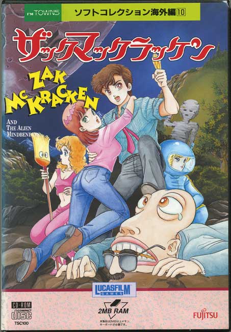 Speaking of Zak McKracken, the Japanese version for FM Towns computers uses a different image - aside from the hero turning into a stock anime boy, his pose actually somewhat resembles the above poses, but the execution is very different. How do we know it is probably a rip-off, anyway? Well, one of he cover variants for the home computer game Joe Blade uses the same pose. Still no sight of their common ancestor, though.