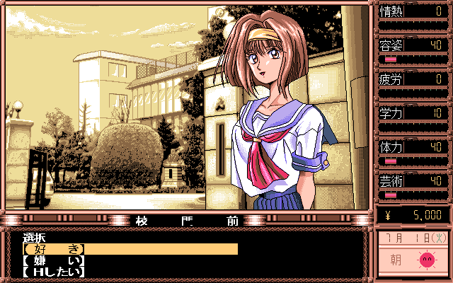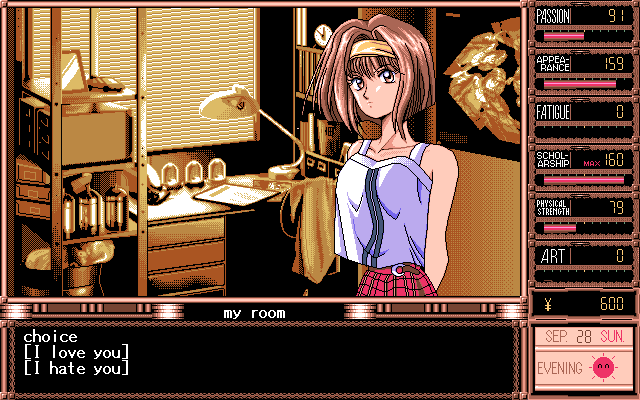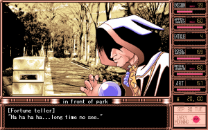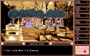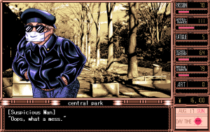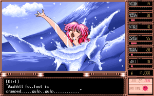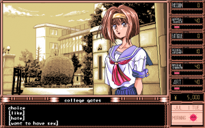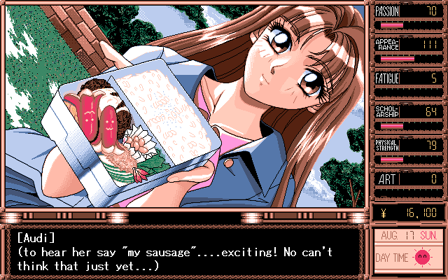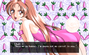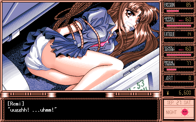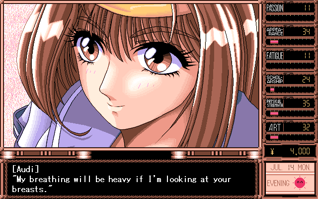 While the story might have been better than expected for an American audience, the game suffers from very obvious low production values. The character design and illustrations were all done by TD-X, an employee of Parsley since the very beginning. While his backgrounds and event illustrations can at times be very attractive, the character illustrations during dialogues look crude and disproportionate. The music is probably more offensive than some of the sex acts found within the game, and becomes extremely tedious with short looping points and overall boring compositions which don’t really fit the characters or the situations they are played within all that well. The Windows version also features several bugs in the save system which sometimes render saves completely useless, requiring the player to start over again. Graphically there is no difference between the PC-98 and Windows version, though musically, the game sounds much better on the PC-98 due to the choice of sound engine.