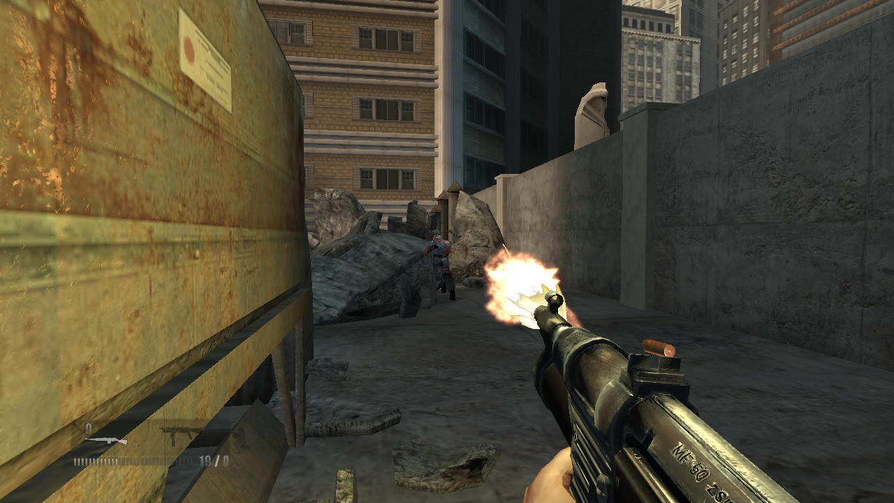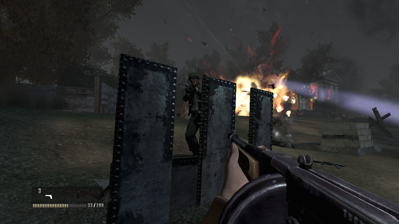 That flatness gets further accentuated by the presentation, where you’re fighting through drab dreary urban environments with little variation. Although it fits the bleakness of the situation, and there’s a satisfying tactility added by the lightly destructible objects and walls dotted around, the visuals feel overly bland. For some, the highlight will be the orchestral soundtrack provided by Michael Giacchino and his cohorts, then known for composing the Medal of Honor games. The music does its best to appropriately fit the mood of any given scene, with a solid amount of orchestration to amplify those emotions. But it sounds too much like other WWII shooters to stylistically stand out, which is the game’s problem overall.