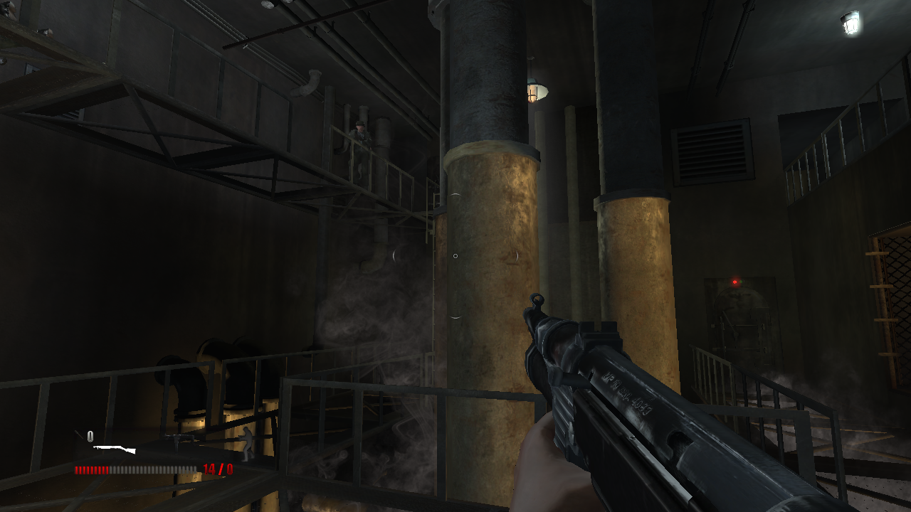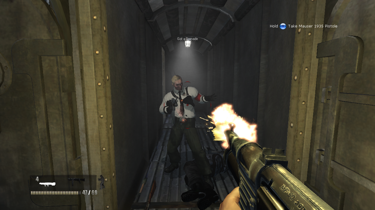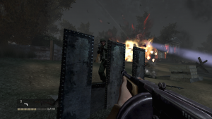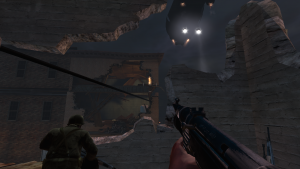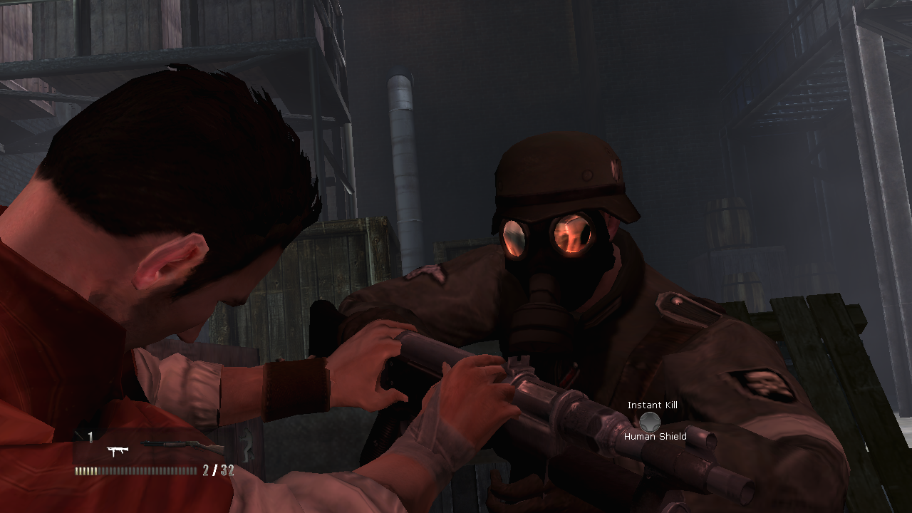 This plays out through a very typical of the era first-person shooter, going through linear levels where you shoot Nazis and complete some sort of objective at the end. You’ve got two weapons and grenades, you can crouch and sprint, and can aim down your gun’s iron sights for more precise shots. The only major addition is how Dan’s implied hands-on attitude from being a construction worker are brought out in a few mechanics.