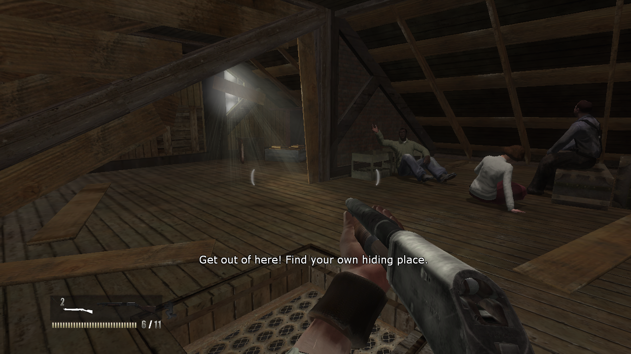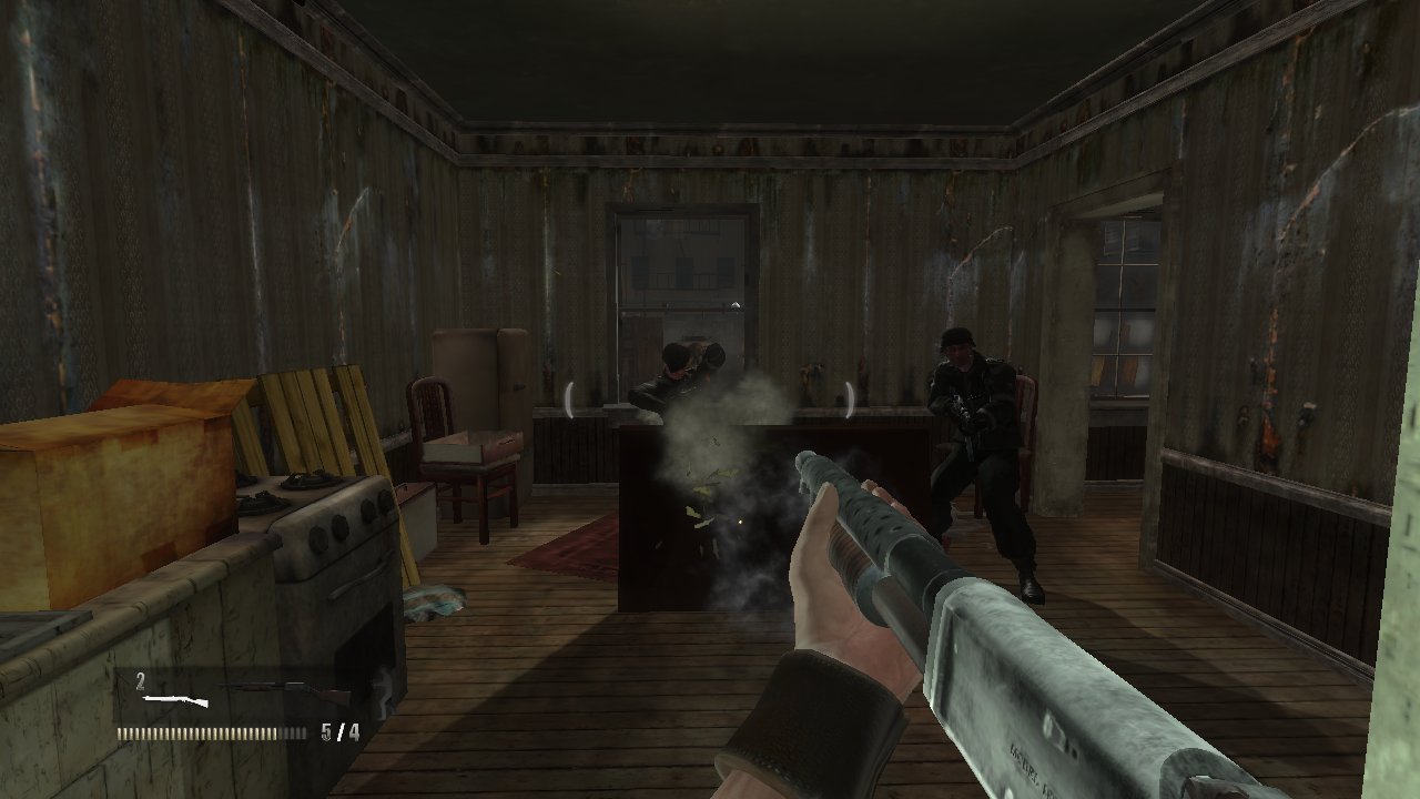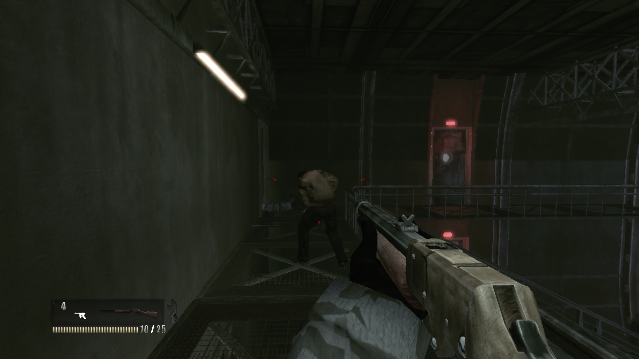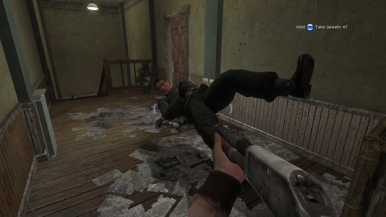 This plays out through a very typical of the era first-person shooter, going through linear levels where you shoot Nazis and complete some sort of objective at the end. You’ve got two weapons and grenades, you can crouch and sprint, and can aim down your gun’s iron sights for more precise shots. The only major addition is how Dan’s implied hands-on attitude from being a construction worker are brought out in a few mechanics.