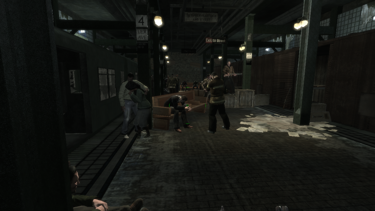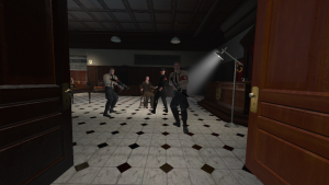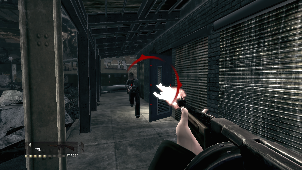 You can climb across overhanging drainpipes and ledges, and grapple enemies up close to kill them instantly (with occasional environmental kills) or use them as a human shield to get some extra shots in. They vary up the gameplay a small bit but are rather undercooked, as you mostly watch animations without much else happening. Triggering the grapples is annoying because you both have to be standing for the grapple icon to appear, and there’s no standard melee attack if you’d rather not deal with the hassle.