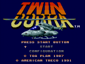 Twin Cobra sold very well and was ported to three home consoles: PC Engine, Genesis and NES. The PC Engine version runs the fastest and plays the most like the arcade version. The Genesis/Mega Drive version runs slower than its 8-bit counterparts for some reason, but looks better. The NES version takes a huge hit in graphics and sound, but otherwise plays pretty well for an 8-bit conversion. All three versions add in checkpoints that you get kicked back to when you die, similar to the Japanese version of the game, though in general the difficulty level is a bit lower. The X68000 and FM Towns versions are very close to the original arcade version, with their own different soundtracks. Both Kyuukyoku Tiger and Twin Cobra are featured on the Toaplan Shooting Battle Volume 1 for the PlayStation, and like Tiger-Heli, also features an arranged soundtrack. Sadly, there was no Volume 2.