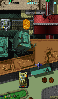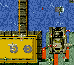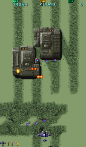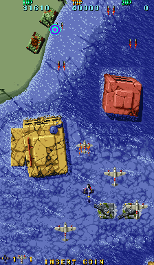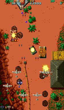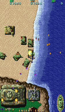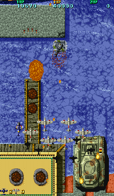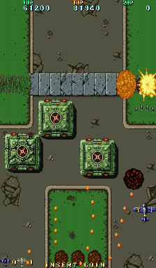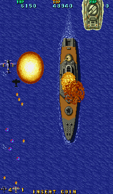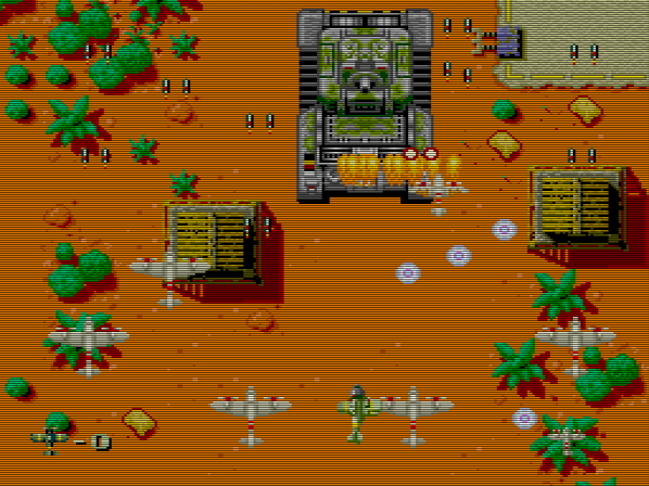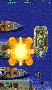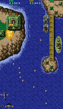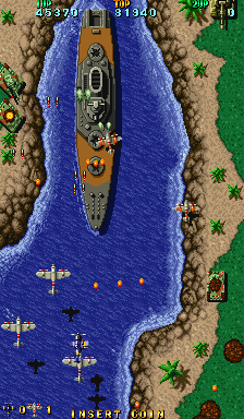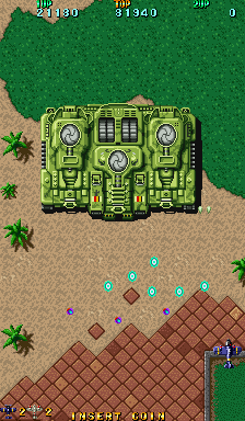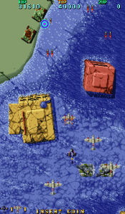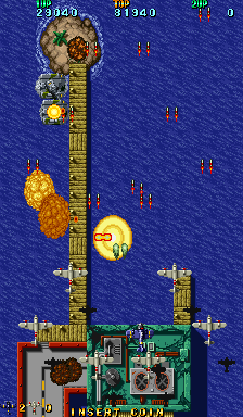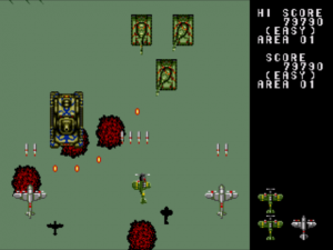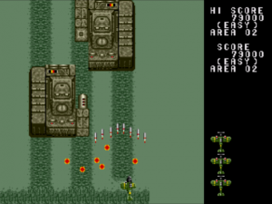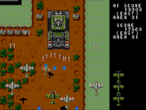 Twin Hawk is notable for giving the player the ability to command a whole squadron of planes in addition to the normal player character. It’s sometimes lumped together with the Tiger-Heli series, but the gameplay is closer to a tighter, smoother Flying Shark. The only perceivable link to Tiger-Heli is the fact that it has the word “Twin” in its name, much like Twin Cobra. The strangest thing about Twin Hawk is that there are no flying enemies. Every last one of them are boats, tanks, and other land-and-sea based foes.