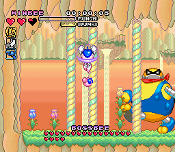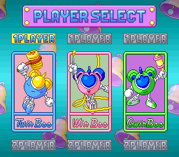 You can chose between TwinBee, WinBee, and GwinBee. They each have different primary weapons, and the time it takes to charge punch attacks and rocket dashes differs as well. WinBee is built for speed and uses a whip-like ribbon, GwinBee is the powerful type and throws rattles, and TwinBee is the balanced type, equipped with a short-range hammer.