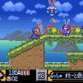 Rainbow Bell Adventures also lets you play simultaneously with a friend. In most-two player games, the characters are usually constrained to the same screen, which means that you can’t ever go too far away from your partner. Here, the camera follows the one taking the lead, and if the other player is left behind, their position is indicated with an arrow at the border of the screen. They can then force the screen to switch back to him with Select button, or teleport themselves near the first player with the Y button. Apart from the standard quest, there’s also a Battle mode in which you must fight a friend. The screen splits in half, and some deadly weapons were designed expressly for this mode.