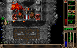 A number of stages in Tyrian use the “turret-mass” minibosses seen in Zanac; this seems to be more prevalent in the early stages, particularly the “Asteroid” stages. Judging from some prototype screenshots that have since surfaced, these asteroid stages were among the first completed.