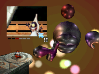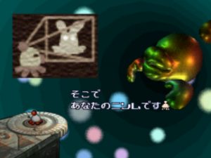 After an enterprising start with outcast RPG Moon, Love-de-Lic displayed no signs of being intimidated by the public’s shortage of interest for their revolutionary product. While Nishi would spend the next three years of his career planning his next blow at videogame conventions, it was Taro Kudo’s turn to assume control and share his own vision as a main designer. Under an unusual packaging style, with a game disc whose printing resembles a common CD-R, UFO: A Day in the Life is an original game that strays far from the intricacy of the RPG system, fitting right into that category of games whose singular style lacks definition.A group of aliens boarding a flying saucer stationed outside the Earth’s gravitational field visits the blue planet in a rescuing mission. Over fifty alien creatures have gone missing from a UFO crash in an apartment roof. These different species are now living underneath the coating of visible reality, interfering with the life of humans and animals. A search party is launched in order to salvage them, but the mission is aggravated by the fact that the rescuer, the playable character, is also unable to perceive where the aliens hide and must use a device named COSMIC in order to unveil them. This electronic device planted on the top of the character’s head resonates with alien presence, displaying an icon at the top corner of the screen wherever one such being is nigh. Much like a common camera, it allows the player to take up to ten photos of the spaces where the missing entities may reside, later to be analyzed back in the space craft by an eccentric character named “Mother”, who eats the negatives and produces images, if that is the case, of the hidden aliens.