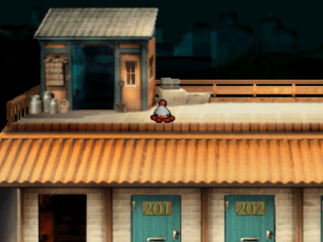 The picturesque minimalism of Kurashima’s stereotypical hand-drawn characters contrasts with the pre-rendered backgrounds, where appropriate lighting effects, multiple layers and a massive amount of detail were applied. The animations are deliberately abrupt and idiosyncratic, stylized and capable of characterizing each personage with a unique feel: to see the painter shake the wine glass in his hands while gazing at his own picture in awe or the young and mindless teenager scratch her overly-thin arm is easily among the most delightful visual recollections from the 32-bit era.