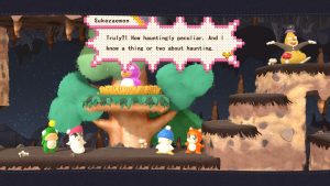 The translation and adaptation in various languages is also quite good and captures very well the game’s goofy Japanese humor and this world’s understated bizarre-ness, in the form of little dialogues during the cutscenes and short chats in the hub area. The characters kept their usual personalities and this comes up in their interactions and the little messages given to the player: Hebe is still a simpleton ditz, O-Chan is still spoiled and theatrical, Sukezaemon is still stoic and meditative, and Jennifer is still a tough manly man.