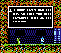 Behind the bizarreness there still is a very good and solid game, with a few glitches here and there but conceived and developed in a competent way. The only downside are some annoying puzzles (namely, freezing enemies with Freeon’s breath to pass over dangerous areas) that require to continuously switch characters via the menu. The graphics and character designs are pretty good but the soundtrack is fantastic, with that trademark Sunsoft sound. Some themes are very intense or epic-sounding, and would make this adventure seem the grand saga the title hints at, if the sprites weren’t so goofy!