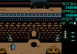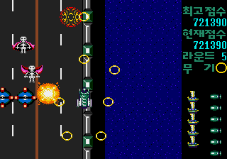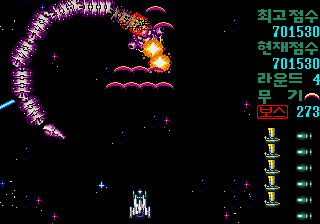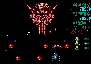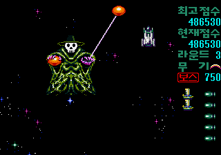 In the end, it appears Samsung didn’t have much faith in the plan, as Uju Geobukseon was the only thing coming out of this. The game has since been routinely derided in the coming years, often seen as a cheap cash-grab without any caring over its quality. That infamy isn’t entirely undeserved because, at a glance, Uju Geobukseon looks beyond appalling. The color is inexplicitly muddy, the art direction is nonexistent, and overall it hardly looks better than most of 8-bit shooters. All of this is accompanied by some of the lousiest soundtrack you’d ever hear on the Genesis, about half of which seems to be played off key. If it weren’t for Samsung logo on the title screen, anyone could’ve had hard time telling whether this game was a legitimate commercial release and not some bootleg cartridge nabbed from grey market.