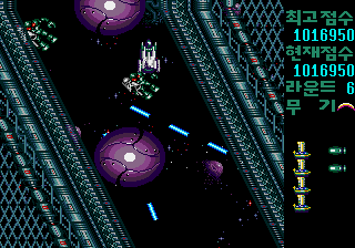 To its credit, the game starts off promising: in the near future of 2020, a super computer catches virus and goes rogue against earth defense force. Young children Titi and Coti are deemed the humanity’s only hope, forcing a group of scientists to build a state-of-the-art vessel to aid their mission. Cheesy plot aside, this spacecraft is the titular “Space Turtle Ship”, based on a real warship used sporadically by the royal Korean navy around the 16th century. It gives the game a bit of personality, even if its actual design in the game is crappy (it looks more like some beetle), and perhaps the developer had taken a note or two from Compile’s MUSHA. Alternatively, the concept might’ve been inspired by 1979 animated film Narara! Ujujeonham Geobukseon, which was in turn a Korean answer to 1974’s Space Battleship Yamato.