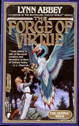 “Four young adventurers: Lord Ironhawk’s son Jordan Hawson, beautiful Althea, a headstrong blacksmith named Drum, and Jordan’s kid brother Squirt heed a mystic globe’s dark warning to find Balthan, Althea’s magician brother. It is a quest that will take them through the perils of trolls, harpies, and gypsies until they discover the mission is far more crucial than they ever imagined. A vast evil has sunk its claws into Britannia. Lord British’s ruling Council of Mages is in hiding, its members marked for death. And only the elusive Balthan knows the truth behind it all.” -The Forge of Virtue