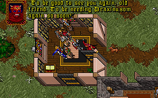 The Guardian plays a major role in The Black Gate from start to finish and interacts with you fairly often, giving advice or comments relating to your actions, or simply being chatty. Though he prevents himself as your friend and provider, there’s something sinister about him from the start, but the full extent of it doesn’t get revealed until well into the game, after his first attempt or two to trick you into murdering or dishonoring yourself. The Guardian is a master of psychological warfare, outright torturing both in-game characters and you the player with taunts, mockery, threats and dangerous advice, sprinkled with just enough truth to keep you guessing about what’s really happening. While capable of brutally powerful magic as seen in later games, the Guardian’s plots go the more subtle route, working behind the scenes, manipulating, and in true super-villain tradition, forcing you to end your quest with a sadistic choice. Richard Garriott has said that while the Age of Enlightenment games were more or less all direct sequels to each other, the Guardian Saga games were the first time he specifically plotted out a multi-game story arc, planning ahead and creating characters that could be carried forward from game to game. Foiling the layers of the Guardian’s plans will take the rest of the series to accomplish.