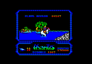 Ultionus also has enough effort put into its level design to make Phantis completely obsolete, though it still carries over some of that game’s flaws. The biggest of these is that Serena cannot move and shoot at the same time. Not unusual for a computer game from the mid 80s, but it can be frustrating in a game like Ultionus which features more enemies on the screen to deal with at a given time as well as a very slow rate of fire for Serena’s laser pistol. The slow rate of fire combined with even the weakest enemies taking two hits to defeat on the game’s default difficulty can make the game a bit tedious to play. An easy difficulty mode is available that fixes this and makes the game more fun, though it also gives the player infinite lives. Fortunately, like in older Castlevania games players can attack while in mid-air, and then immediately again after touching the ground, making it possible to cut through some of the game’s more durable enemies without losing much momentum or getting overwhelmed.
