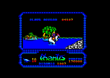 Unfortunately, said troll is a powerful and foppish warlord known as the Star Prince, meaning lots of resistance for Serena S as she attacks this hostile world. If something seems oddly familiar to about Ultionus and Phantis even to players who have never heard of the latter, it’s because outside of Spain Phantis was renamed and marketed as the sequel to a mediocre Dinamic shooter named Game Over. While Game Over II‘s cover features the first game’s formerly captive princess as its new heroine, in the game itself she is changed to resemble a generic guy in a spacesuit to match the original Game Over. In making Serena the protagonist and removing the kidnapping completely, however, Bado has found a good compromise between homaging the aesthetics of the era in which games like Game Over were made while discarding some of the dumber elements of their presentation.