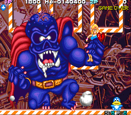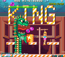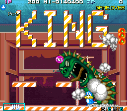 Actually, that's a bit unfair. The game is Bubble Bobble, yes. You put enemies in bubbles, and then burst them. They die. But it does have a couple unique twists on the basics. For one, you can charge up a super bubble that can encapsulate multiple enemies, and also gives a significant point bonus. Secondly, there is farting. Yes, farting. You can fart. Congratulations, SunA, you've managed to blaze trails that only the platforming classic Boogerman ever dared to explore.