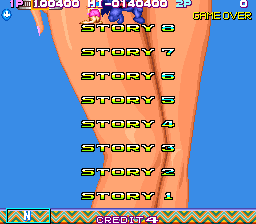 But there it was. Completely out of the blue. A set of smoothly-waxed anime legs, tempting me on the progress screen between worlds. Now, obviously, legs alone would be a pretty silly, so it seemed safe to assume that it'd scroll up in between levels, revealing more of this vixen. We could only pray that they didn't give it the face of a giraffe at the top. I swear to god, they ALWAYS do that shit to me.
