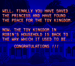 - This is the first and only time that we see the name "Robin." We can assume, I think, that that's the name of the kid above, who also apparently stole half of his clothes from Luigi and the other half from Mario. I have no idea why they felt the name to give him a name that only 1% of people who touch this game will ever see, but I love them for it.