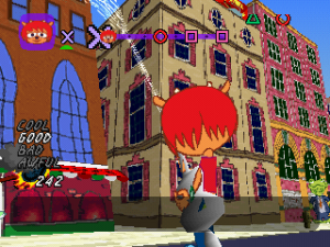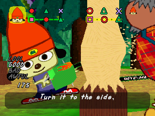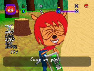 Unfortunately, Lammy tries to up the ante in how crazy things are both visually and in what happens, but ends up losing the simple charm that made PaRappa so endearing. While Lammy’s an adorable character, the various circumstances you’re thrown into don’t have a connecting thread beyond random obstacles stopping you from reaching the concert in time, and while it is somewhat admirable to see the team mess around with so many strange ideas and characters, it feels less coherent.
