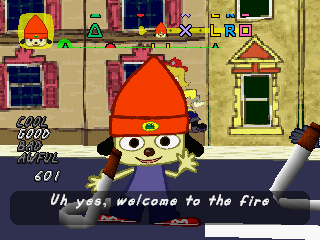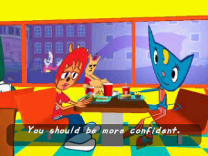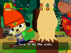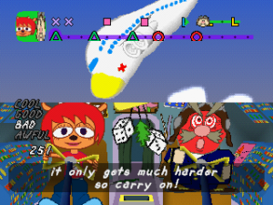 As well as that, when you beat the game, you unlock a brand new mode where you play as Parappa through heavily remixed and rearranged versions of stages two through seven (there is a Parappa remix of the first stage featured on the disc, but it’s not accessible through normal means). Not only are these basically six new levels – complete with short cutscenes showing Parappa’s attempts to form a rock band with PJ Berri – but these can also be played in multiplayer against Lammy, with the two versions changing for every line. You can even choose whether to play as Parappa or Lammy, further doubling the number of levels on offer!