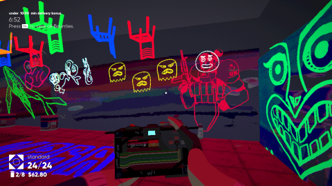 Umurangi Generation is a game about art and expression. The scoring system the game employs is ultimately arbitrary, whether the game thinks a photo is good or bad is completely random, so reaching a certain level of money earned in the secondary objectives comes down to just taking a bunch of pictures. It’s a sort of freeing thing to realize, that you can just shoot whatever and mess with the settings however you want. Make it an artsy black and white, turn up the saturation to make some graffiti pop, over expose something for shits and giggles, do whatever. See that cat? Capture it with a fish eye lens, fish eye lens everything, who’s gonna complain? You can even play with spray paint and hover boots in the DLC (which is a must to fully experience the game).