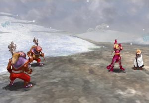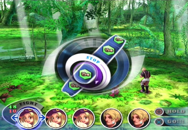 The battle system has also been completely revamped, with very little in common with the previous games. Learning new attacks through Glimmers is still here, although they now just add new spaces to your attack reels. Every round of combat, you are allowed up to five actions, which can be performed in any combination by your party. Thus, you can have one character attack five times, have five characters each attack once, or anything in between. However, any action taken in battle consumes HP. In this game, though, HP acts in a manner very dissimilar to any other RPG. HP acts merely as a buffer to your Life Points, which are the true determination of how healthy your characters are. Thus, if a character has a high current HP total, he is less likely to lose a Life Point when attacked than a character with little or no HP. However, having high HP is not a guarantee that you can avoid taking LP damage, nor is having zero HP a guarantee that you will take LP damage. The problem that arises is that the same system holds true for any enemy you encounter – they can only be defeated by damaging their Life Points. Experimenting to discover which kind of attack, or combination of attacks, is best at striking an enemy’s Life Points is the key in forming a successful strategy. Unfortunately, this system can be very frustrating to get used to. This is especially true for people used to the standard system in most other RPGs, who may very likely be confused as to why certain enemies aren’t dying, no matter how much HP damage inflicted upon them.