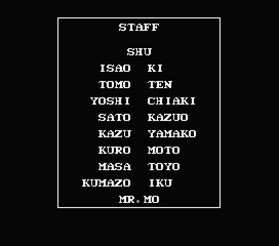 Some MSX2 cartridge games, including Uşas, supported multiple languages based on the region of the MSX2 that it was played on. The Japanese and English versions are more or less identical except for some slight differences in the running speed of the game (NTSC vs. PAL). The Japanese version also has an additional ending screen that was removed in the European version. Without spoiling too much, the ending of this game is so totally unexpected that it is worth playing the game just to see how it unfolds.
