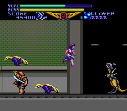 Valis II introduced the more linear action platformer stages to the series, but here they are really dull and boring. At least half the game is spent just running down flat stages and shooting everything in sight. The Valis sword fires long range projectiles from the very beginning, and the game feels more like a run-‘n-gun than any of the others. As usual, there are different firing modes to be gained from defeated enemies. Sometimes they also drop support weapons with very limiteed uses, like protective barriers that circle around Yuko, or brief invincibility. They are activated by simply pressing “up”, though, so it’s really easy to end up using them accidentally. Unfortunately, it’s just a very mediocre and forgettable action game, only memorable for some nice creepy enemy sprites.