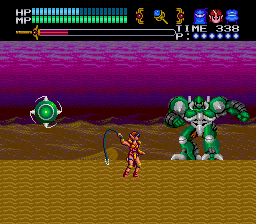 Valis III is the point where the series finally got kinda good. In part that’s owed to the tight controls (apart from the awkward up + jump button high jump) and above average level design, but the game’s most flashy feature is the ability to switch between several characters by the press of a button, and each of them has a different weapon. Yuko settles on one type of energy wave, but it needs to charge up for a split second after each attack to reach its full range. Cham is pretty much the official Castlevania tribute character, as she wields a whip that works exactly like the Belmonts’ family weapon. Soon, the two free princess Valna from being enclosed in a crystal, and she shoots magical charges from her wand, which gain a wider spread as it gets upgraded.