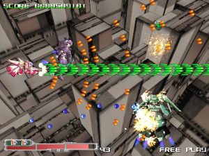 There’s a good amount of polish that suggest that designers 2CCP really knew what they were doing – the score and status bar dims whenever your ship approaches the top or bottom of the screen, to more easily clarify your view, and the game politely informs you whenever enemies are approaching from offscreen. Some foes fly in from the background, and it’s hard to determine when they actually come into play, but otherwise this system works pretty well. Some of the bosses have some pretty hectic bullet-hell style patterns, though nothing nearly as complicated as anything by Cave or Touhou. Like many modern shooters, there’s no real level design – just waves upon waves of enemies – although the backgrounds keep things from getting too repetitive. Your ship is annoying large, but the hitbox is pretty small. Most of the music consists of bland rave and techno music, all of which is easily forgettable.