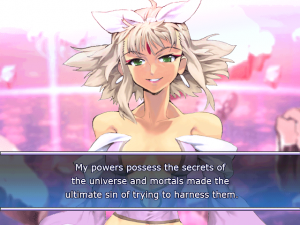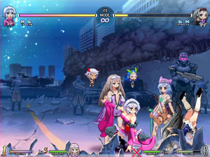 The game is generally well balanced and a lot of fun, lack of modes aside, and its damn pretty to just watch. For a game made by one man, Vanguard Princess is downright gorgeous, with short anime style cutscenes before a super activates, and a ton of detail on sprite designs. It’s fast and flowing to boot, only failing to live up to the standards of Arc Systems Works due to a lack of HD graphics. However, the sprite work is pure art in motion and almost even more appealing at moments. Surprisingly, the titty and ass stuff you’d expect to be all over this game is mostly limited to Luna (Gainax bouncing), Natalia (butt slam and no pants), and Kurumi (endless panty shots), or it comes by so fast that you don’t have the time to register it. The fact the English version needed DLC for the fanservice stuff is kind of odd, because there’s not nearly as much as you’d expect from its reputation. Though, to be fair, Luna REALLY adds a lot in there (seriously, why is she wearing a heart pasty instead of underwear).