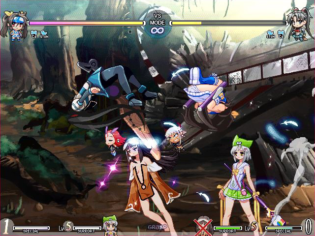 In 2009, former Capcom and SNK sprite artist Tomoaki Sugeno, known online as Suge9, released a new fighting game made in Fighter Maker 2nd called Vanguard Princess. After spending a career doing work on the likes of the King of Fighters series, Suge9 sought to branch out into his own project, coming up with an all women roster fighting game with a Guilty Gear aesthetic to it, though less rock and more “…ecchi.” Despite the similarities the concept has to the much more popular Arcana Heart series, Vanguard Princess is a very different beast.