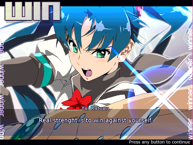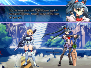 Yui Kutuna – The owner of the legendary Sakuya Sword and heir to the Kutsuna-Musou style, Yui enters the fight to find her sister Haruka. Her heavy attack covers a lot of area, and she has a simple set of specials to work with, making her beginner friendly. Can also use petals that appear after some of her attacks as projectiles.