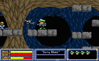 For starters, on the first screen of the first level the first item you can pick up is a health decrease – it actually makes you weaker! The game is tough without this self-induced handicap though, so you might as well head to the options and immediately bump up the available lives and ammo counter. After this you should also probably avoid any exploration or item acquisition, since several crates contain the health-downgrade item, or otherwise useless junk you never get a chance to use (supposedly there’s an in-game menu where you can use these, but the manual doesn’t explain how to access it). Oh, and the game’s early levels have arrows pointing in the exact opposite direction of the exit – so stay on the path, or rather off the path, as it were.