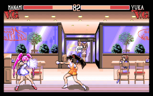 Released in 1993 on the NEC PC98, Variable Geo has an interesting setting for a fighting game. The titular tournament is a yearly competition among the so-called “combat waitresses”, sponsored by family restaurants from all over Japan. The best waitress wins a monetary prize not only for herself, but also the restaurant chain she represents.