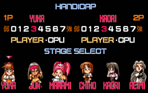 V.G. is not just a fighter, but also an H-game – one of the many on PC-98. The punishment for defeat is not just simply losing a bout and having your adversary trash talk you. The rules of the Variable Geo tournament are simple – the defeated girl has to undress or do even more degrading acts in front of the public, and the game shamelessly shows this in graphic detail after each loss. There’s an option to switch off graphic scenes in the config menu (which is simply called “Graphic”), so the player can enjoy the game without being interrupted by the imagery, if there’s really something to enjoy, that is. And that’s pretty much the whole point of the original Variable Geo – a poorly made fighting game that’s just an excuse to show naked women. But regardless of that, it apparently sold well enough to warrant a sequel for the same platform.