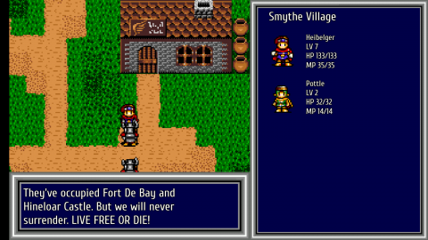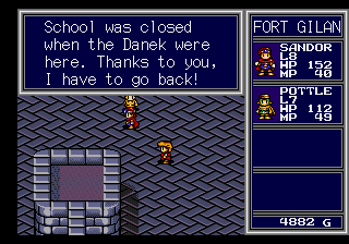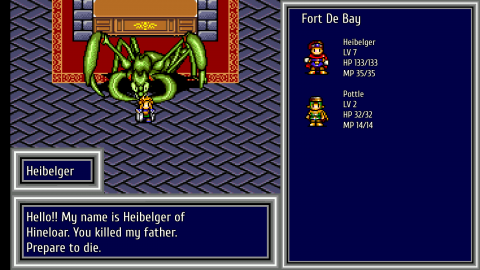 This re-release uses a completely new English translation rather than the Working Designs Sega CD one. It keeps the original character names, though you’re free to rename them whatever you’d like), and there’s new English dubbing too, though you can keep it in Japanese. The new script maintains a similar goofy sense of humor – Sandor / Heibelger quotes The Princess Bride before the first boss fight with the famous “You killed my father. Prepare to die”, Otto references The Legend of Zelda when telling Pottle to join with a “It’s dangerous to go alone” joke, and so forth. It’s still not entirely accurate to the Japanese text, but there are no farting fairies so it’s still an net improvement.