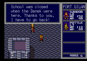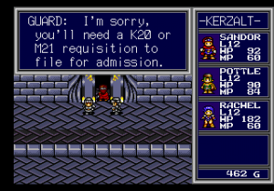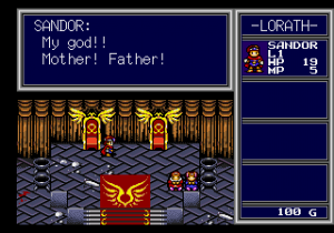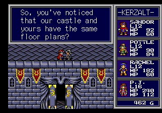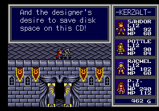 For the most part, this works in the game’s benefit, especially when it comes to NPC dialogue, which is often more funny than not. Children complain about going back to school when Sandor saves the day, and maids mutter about stinky soldier undergarments. There’s the occasional fourth wall break joke, like when a soldier muses about how similar all of the castles look, mentioning that it’s supposed to be a sign about the alliance between neighboring kingdoms but actually a way to preserve CD-ROM space. (This doesn’t even really make sense though, considering CD-ROMs had orders of magnitude more space that cartridge games of the era.)