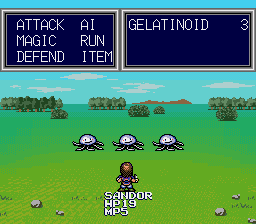 The rest of the game, however, is not so visually impressive. During exploration, the entire right third of the screen is taken up by a status menu, something that was common in late 1980s/early 1990s PC RPGs but looks pretty outdated for a Sega CD game. The fantasy/sci-fi premise, meshing swords and sorcery with mechas, was seen in the previous decade with anime like Aura Battler Dunbine and Panzer World Galiant, and later seen in the 1990s with Escaflowne and Magic Knight Rayearth. Unfortunately, Vay doesn’t make great use of the setting, as the early stages of the game look like a pretty standard JRPG, complete with vaguely comical Dragon Quest-style enemies. It’s not until you get further in the game that you begin to see robotic enemies and alien settings. But even then, the story is pretty basic RPG stuff, since the Vay armor is treated like the same ancient artifact that lies at the center of any number of similar games. For all of the effort to get to the end, the Vay armor isn’t even particularly impressive once Sandor gets to equip it.