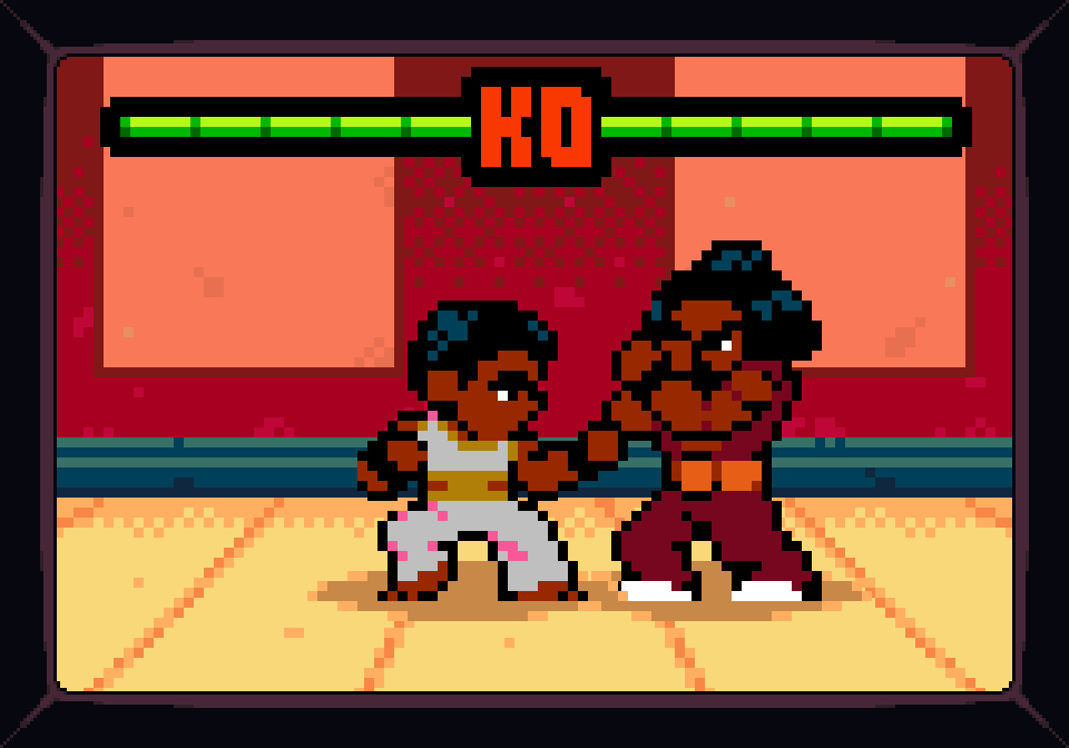 Completing all the possible routes in a single game will last up to about an hour and a half, a respectable duration for an arcade beat-em-up; to break the monotony inherent in the genre, the devs also added a couple minigames. Stage 2 has a moped run where you have to avoid or jump over obstacles and pick up gold bars while someone is bombarding us from the background, and the beginning of stage 5 is a simple horizontal shmup, representing our heroes getting to the final boss’ lair in outer space. Also, before his boss fight, the Quarter Jockey will force us to compete against him in “Final Dragon”, a Karate Champ-style fighting game, that luckily doesn’t affect the main gameplay whether we win or lose; this game-within-a-game is also based on the 1985 cult martial arts flick The Last Dragon, with the two fighters modeled upon Bruce Leroy and his arch-rival Sho’Nuff.