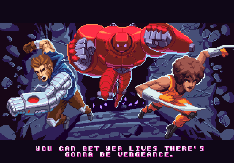 Vengeance Hunters manages to deliver what Nalua promised: a brawler that on the surface homages the 1990s with its big expressive sprites, cheesy storyline, catchy soundtrack, cartoonish grunts and sound effects, but hides a lot of finesse that goes above and beyond the arcade games of the era, with its fluid and precise controls and a calibrated difficulty that is not artificially stacked against the players. Not relying on a pre-existing IP may have hurt its chances of becoming popular, but fighting game and belt scroller enthusiasts should definitely keep an eye on it.