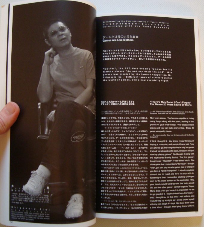 It is the perfect book. For a start it features interviews with several major Japanese developers, regarding either their work on Famicom games or, if they worked on rival hardware, their views on the era. It features Shigeru Miyamoto, Shigesato Itoi, Yuji Horii, Kouichi Nakamura, Satoshi Tajiri, Ken Sugimori, Hideo Kojima, and Yuji Naka. Their answers are candid, very detailed and - best of all - available in English alongside the original Japanese. In fact everything in the book is available in both Japanese and English. The translations aren't perfect, but that's not a deal breaker. Everything is perfectly understandable, and it makes for more charming reading than something done by committee and filtered through corporate PR.